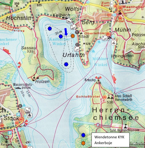 2x die Wendetonnen in der Kailbacher-Bucht (siehe Kursplan)